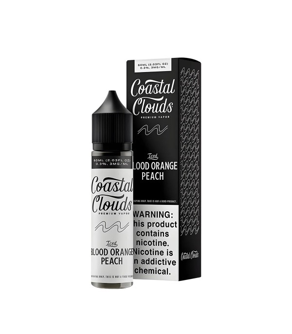 Coastal Clouds Iced Blood Orange Peach, kan portakalı ve şeftali aromalarını serin “ice” dokunuşuyla buluşturan 60 ml’lik freebase e-likittir. 70 VG / 30 PG oranı ile canlı ve ferah bir meyve profili verir.