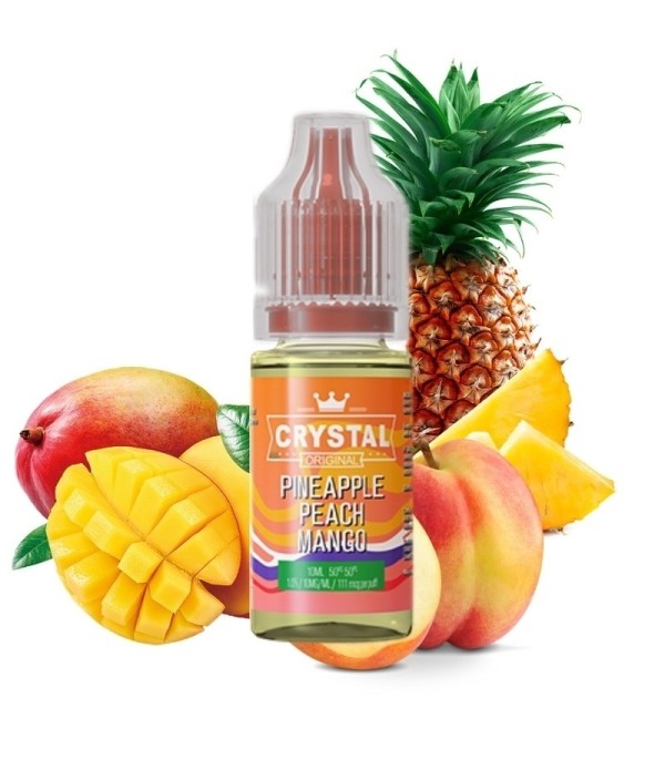 Crystal Salts V2 Pineapple Peach Mango, olgun ananas, şeftali ve mango aromalarının mükemmel birleşimiyle oluşturulmuş bir salt likittir. Özel nikotin tuzu formülü sayesinde pürüzsüz bir boğaz vuruşu ve yoğun aroma deneyimi sunar. 50/50 PG/VG oranı ile pod sistemleri ve salt likit kitleriyle mükemmel uyum sağlar.