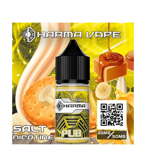 Dharma Pub Salt Likit, baskın muz, bisküvi, karamel, vanilya ve fıstık aromalarının dengeli birleşimiyle tatlı ve yoğun bir vaping deneyimi sunar. 30 ml şişe, 35/50 mg nikotin seçenekleri ve premium formülüyle pod mod cihazlarla mükemmel uyumludur.