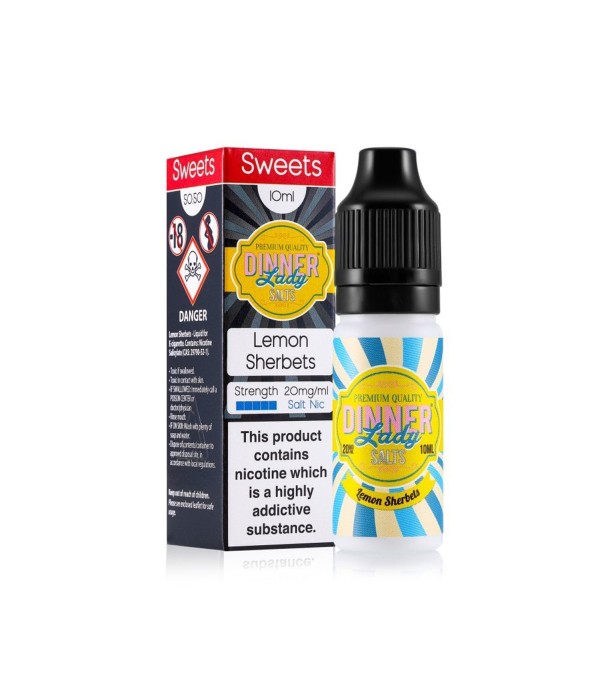 Dinner Lady Lemon Sherbet Salt Likit, limon, limonata ve tatlı-ekşi şekerleme notalarının harika bir kombinasyonunu sunarak elektronik sigara kullanıcılarına eşsiz bir lezzet deneyimi vadediyor.