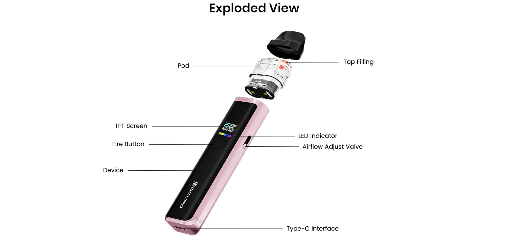 Dovpo AYCE Pro 2 Pod Kit, 1000mAh bataryası, 5-30W güç çıkışı ve 0.4-0.6-0.8 Ohm ZYTEK 2.0 mesh pod seçenekleri ile hem aroma hem buhar performansını dengede tutar. 2ml pod kapasitesi, üstten dolum ve yan hava akışı kontrolü ile kullanım kolaylığı sağlar. USB-C şarj ve renkli TFT ekranıyla hem görselliğe hem işlevselliğe önem veren kullanıcılar için güçlü ve stil sahibi bir tercih.