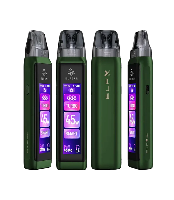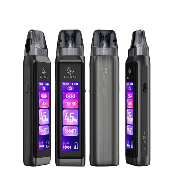 Elf Bar ELFX Ultra Vape Pod Kit, dokunmatik ekran, özelleştirilebilir LED ışık ve RGB tema seçenekleriyle dikkat çeker. 1500mAh bataryası, 0.6 Ohm ve 0.8 Ohm mesh coil pod seçenekleriyle hem aroma hem buhar performansı sunar. Turbo ve Eco modları ve Infinite Airflow sistemine sahip olmasıyla MTL ve DTL içim tarzları arasında geçiş yapabilen, hem görsel hem işlevsel bir cihazdır.