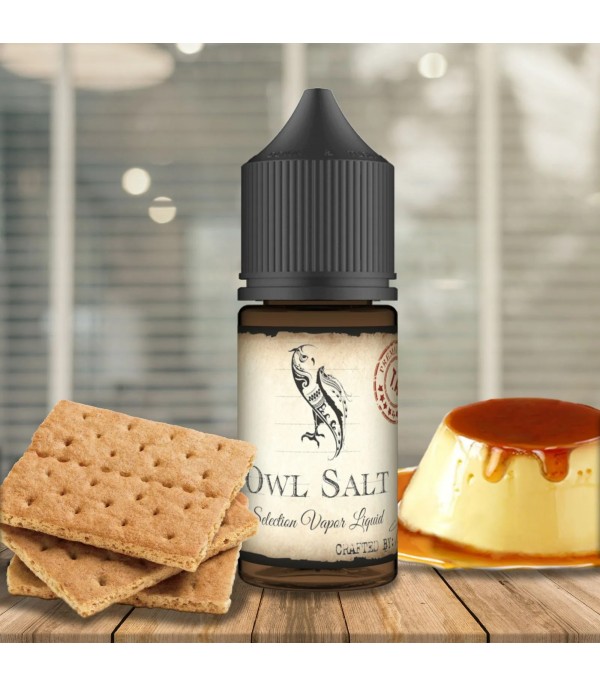 Owl Vape Custard King Salt Likit, bisküvi ve karamelli puding aromalı likit.