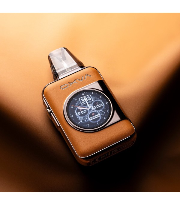 OXVA NeXlim Pod Mod siyah ve kahverengi deri kaplamalı, dijital ekranlı elektronik sigara. OXVA NeXlim Pod Mod siyah ve kahverengi deri kaplamalı, dijital ekranlı elektronik sigara.