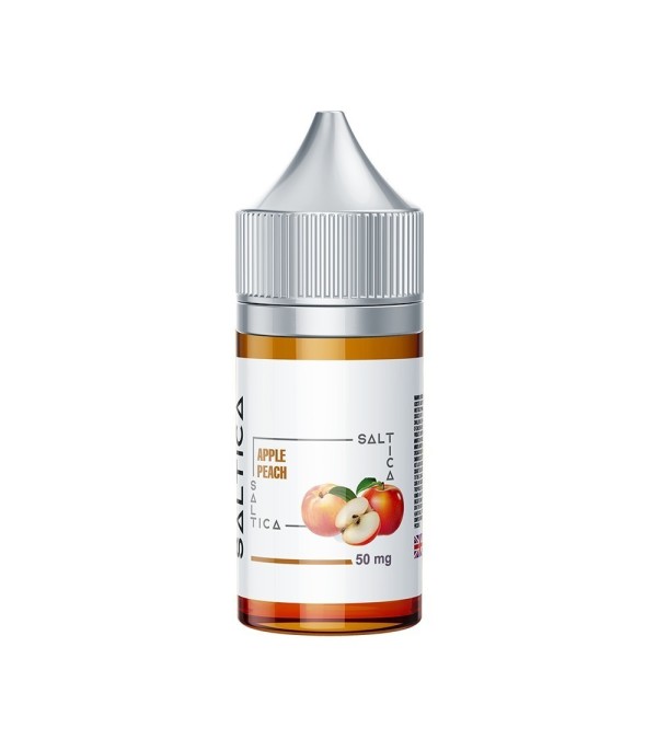 Saltica Apple Peach Salt Likit: Taze elma ve tatlı şeftali aromalarının mükemmel uyumu. Premium lezzet, pürüzsüz salt nikotin içeriği. Şimdi deneyin!