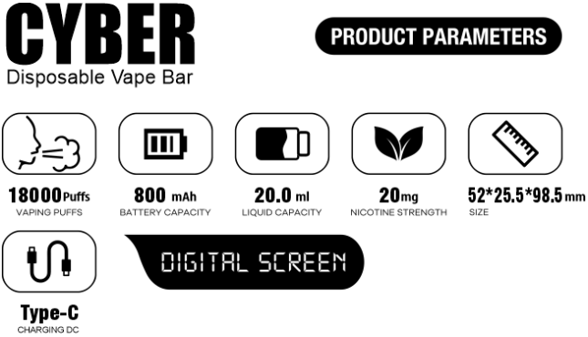 Saltica Cyber, 18000 çekişe kadar dayanan uzun ömürlü bataryasıyla sizlere kesintisiz elektronik sigara keyfi sunuyor. Gün boyu süren yoğun kullanımınızda dahi performansından ödün vermeyen bu özel cihaz, size tatmin edici bir deneyim sunmak için tasarlandı.