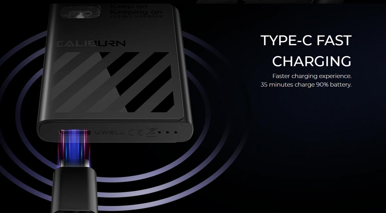 Uwell Caliburn GZ2 Pod Mod, dahili 850mAh batarya, hızlı şarj desteği ve değiştirilebilir Uwell Caliburn G ve G2 coil sistemleri ile uzun süreli ve tatmin edici bir deneyim sunar.