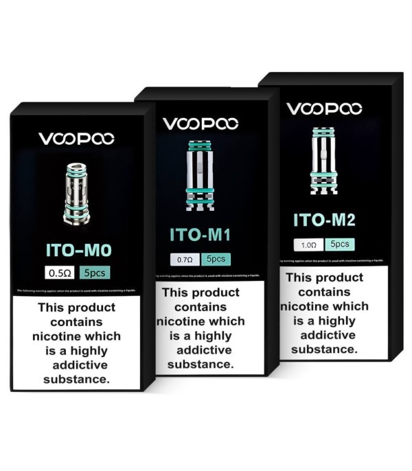Voopoo ITO Coil çeşitleri (M0, M1, M2) 5'li paket, farklı Ohm değerleri.