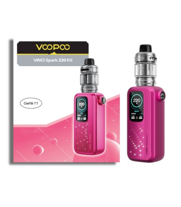 Voopoo Vinci Spark 220 Pod Mod pembe renkli, parlak ekranlı elektronik sigara kiti.