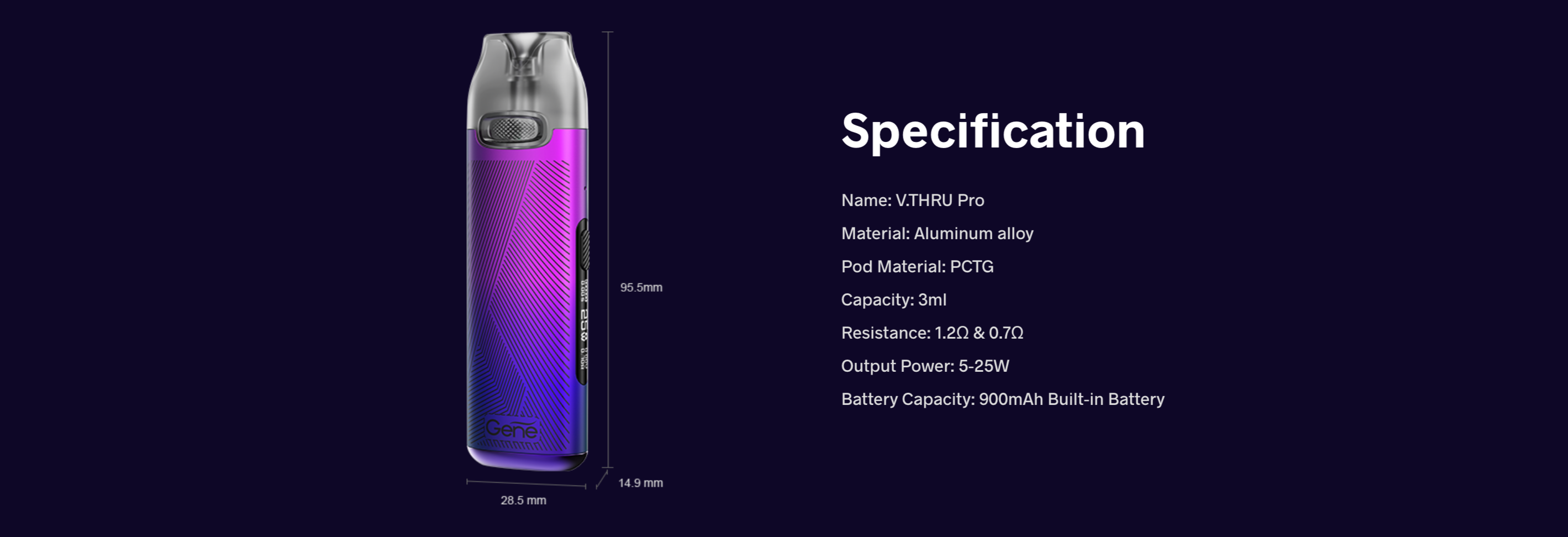 Voopoo V.THRU Pro Pod Mod, modern ve şık tasarımıyla günlük kullanım için mükemmel bir seçenek sunar. 900mAh dahili batarya kapasitesi ve 25W’a kadar ayarlanabilir çıkış gücü sunar.